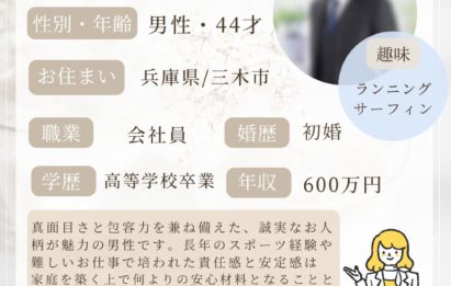 お仕事は福祉関連職をされており、心優しく、周囲への感謝の気持ちを大切にされています✨