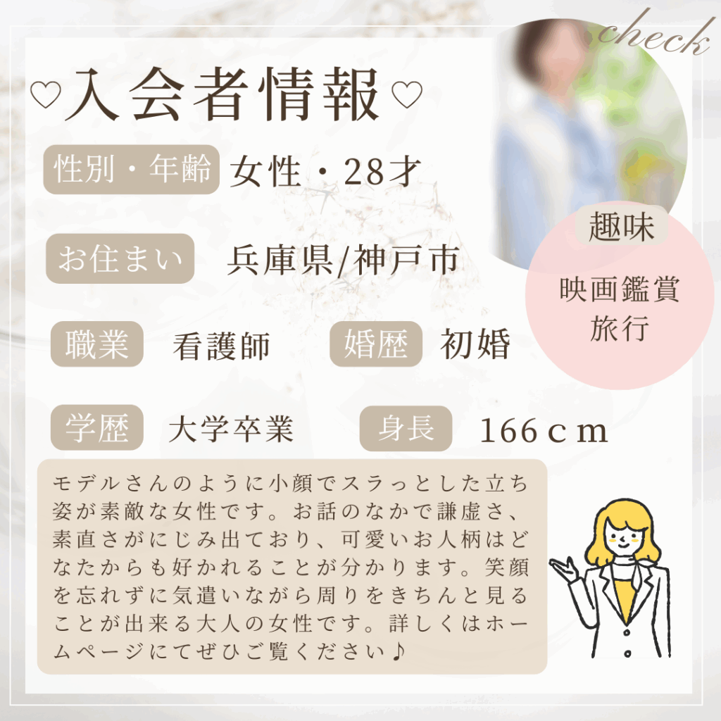 お仕事は看護師をされており、結婚後の働き方については資格を活かしながらお相手の方に合わせて柔軟に考えたいとのご意向です🤗