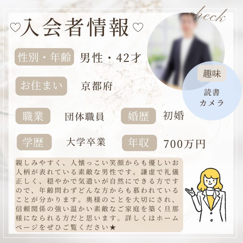 素直で誠実な方ですので、奥様のことを大切にされ、信頼関係の強い温かい素敵なご家庭を築く旦那様になられることが分かります💕