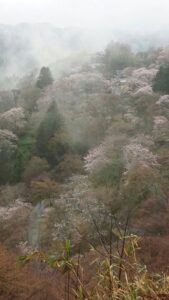 雨の合間に雲に霞む桜